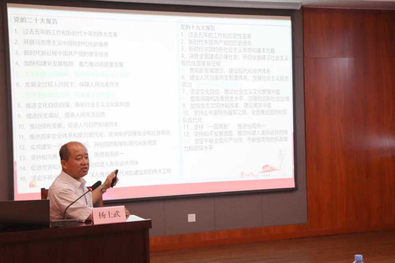 學(xué)習(xí)宣傳貫徹黨的二十大精神是當前和今后一個時期的首要政治任務(wù),為深入學(xué)習(xí)宣傳貫徹黨的二十大精神,進一步凝聚共識,筑牢思想根基,財金集團特邀中共市委講師團副團長、教授楊士武同志做學(xué)習(xí)貫徹黨的二十大精神專題宣講。宣講會以原原本本學(xué)習(xí)研讀黨的二十大報告和黨章為綱領(lǐng),帶領(lǐng)大家認真領(lǐng)悟黨的二十大提出的新思想新論斷、作出的新部署新要求。