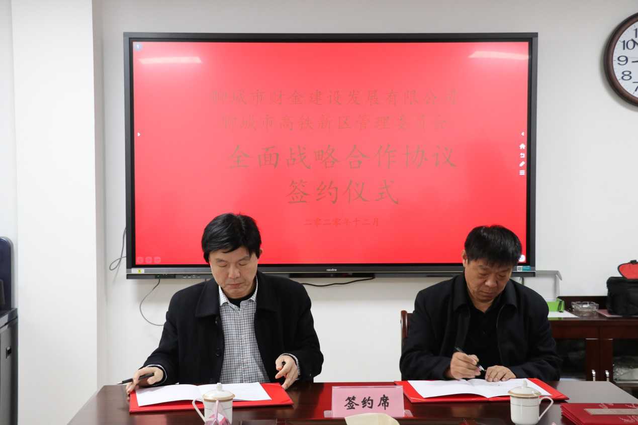 2020年12月29日,聊城市財(cái)金建設(shè)發(fā)展有限公司與高鐵新區(qū)管委會(huì)、城市發(fā)展公司與住建投公司簽署戰(zhàn)略合作協(xié)議。聊城市財(cái)金建設(shè)發(fā)展有限公司黨委書記、董事長張繼堯,聊城市高鐵新區(qū)管理委員會(huì)主任賈相云雙方各自介紹了相關(guān)情況,并簽署了戰(zhàn)略合作協(xié)議。