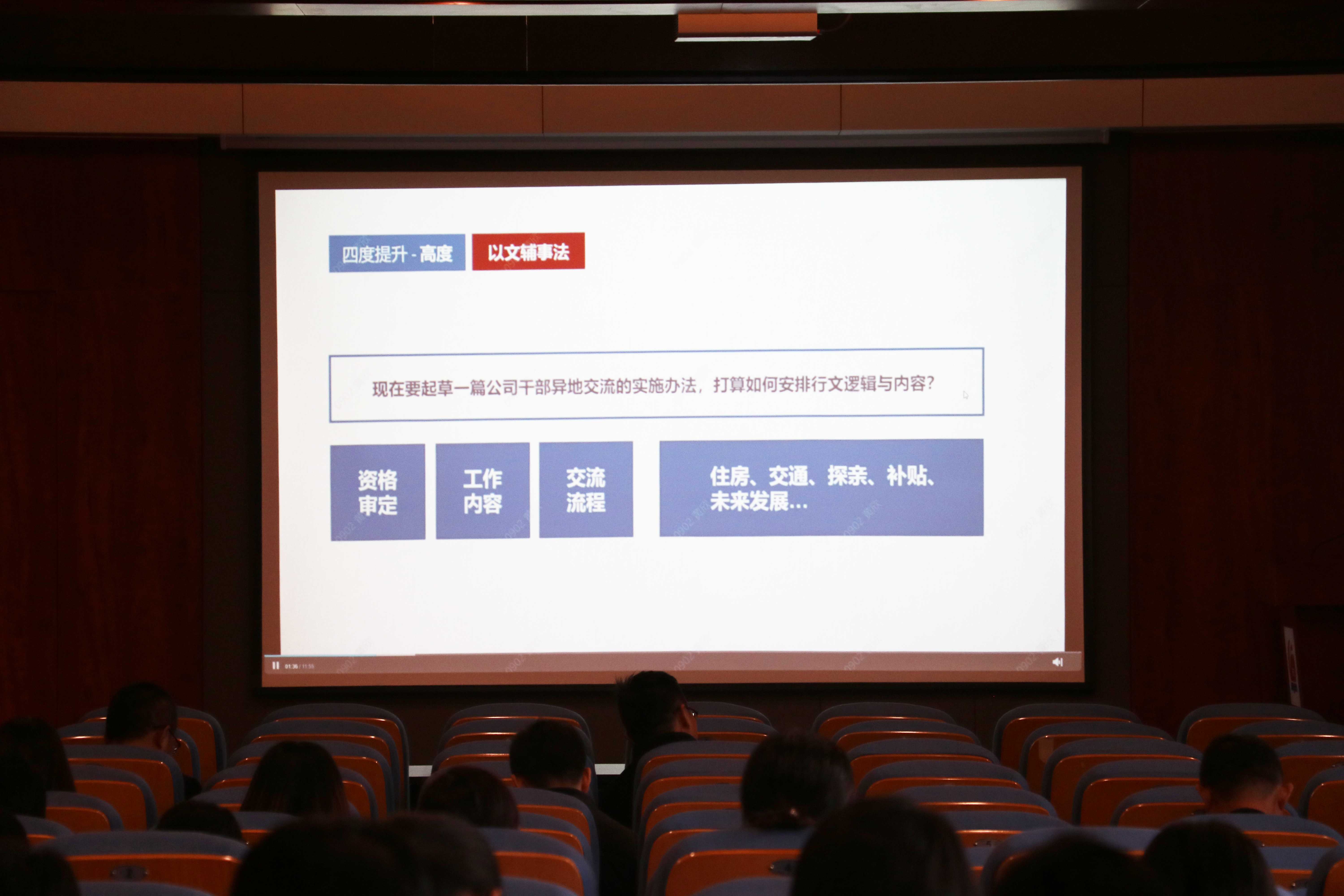 培訓(xùn)導(dǎo)師孫建東采用理論聯(lián)系實際的授課方式,循序漸進(jìn),深入淺出,針對如何提高文章寫作“高度”“寬度”“深度”“亮度”四度,利用案例進(jìn)行詳細(xì)講解,并教授以文輔事法、一針見血法等多種寫作技巧。通過孫老師的講解和分享,有效幫助參培人員掌握書寫技巧,提高文章“四度”,為參培人員完成高質(zhì)量公文寫作助力。