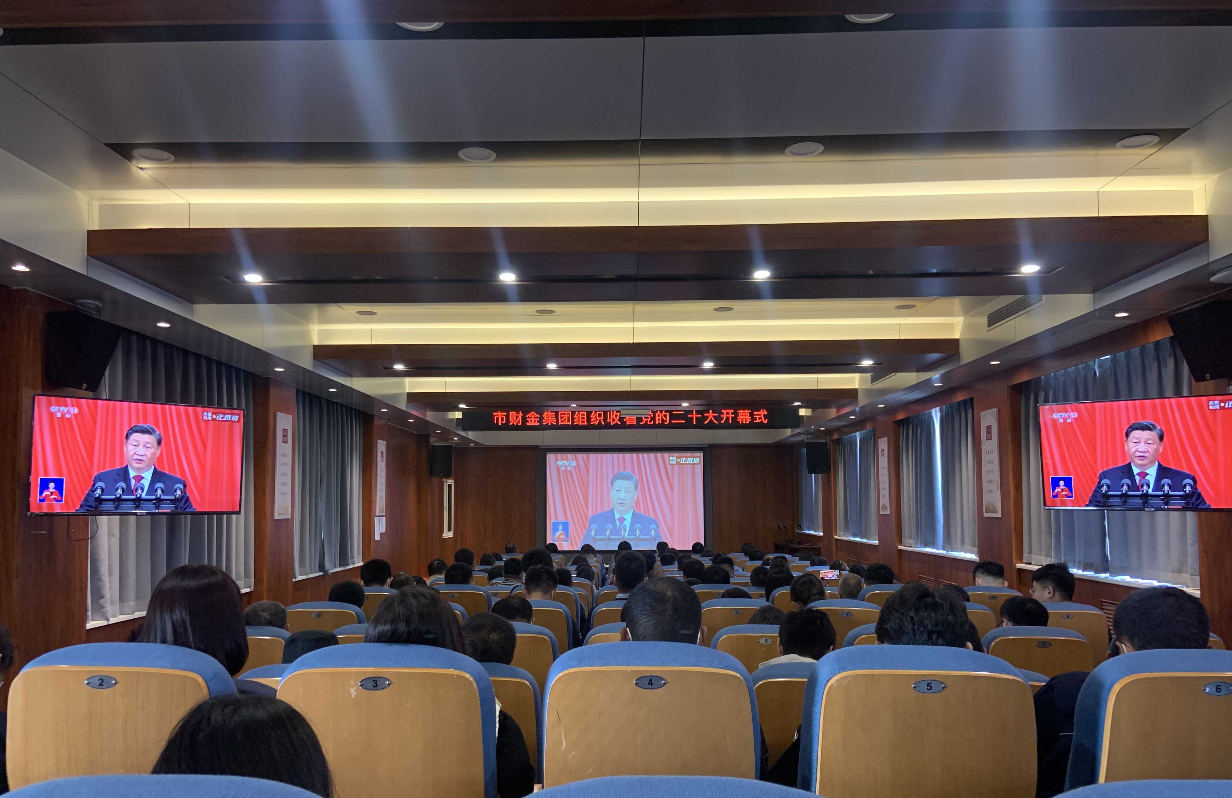 財(cái)金集團(tuán)組織全體干部職工收聽收看中國共產(chǎn)黨第二十次全國代表大會(huì)開幕式現(xiàn)場盛況直播,認(rèn)真聆聽習(xí)近平總書記代表第十九屆中央委員會(huì)向大會(huì)所作的工作報(bào)告。